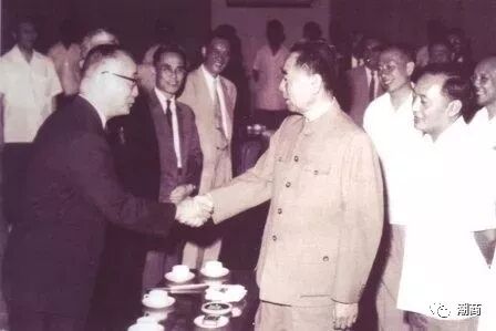 1956年,周恩来总理在北京接见香港中资银行和保险公司经理级人员(左二为庄世平)
