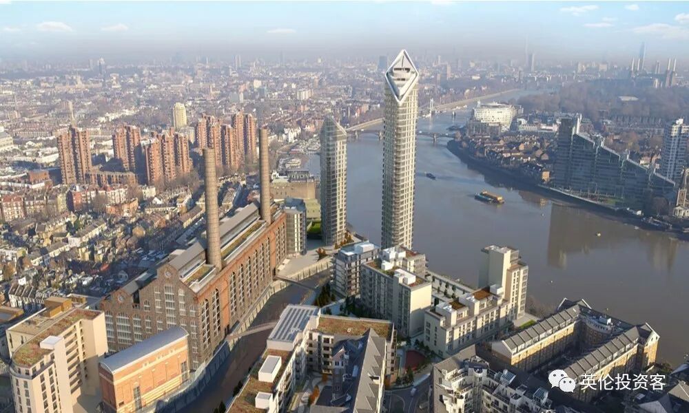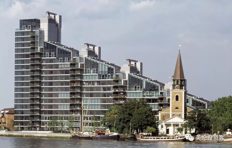 从Chelsea Waterfront可望见和记黄埔在河对岸的两处高档公寓