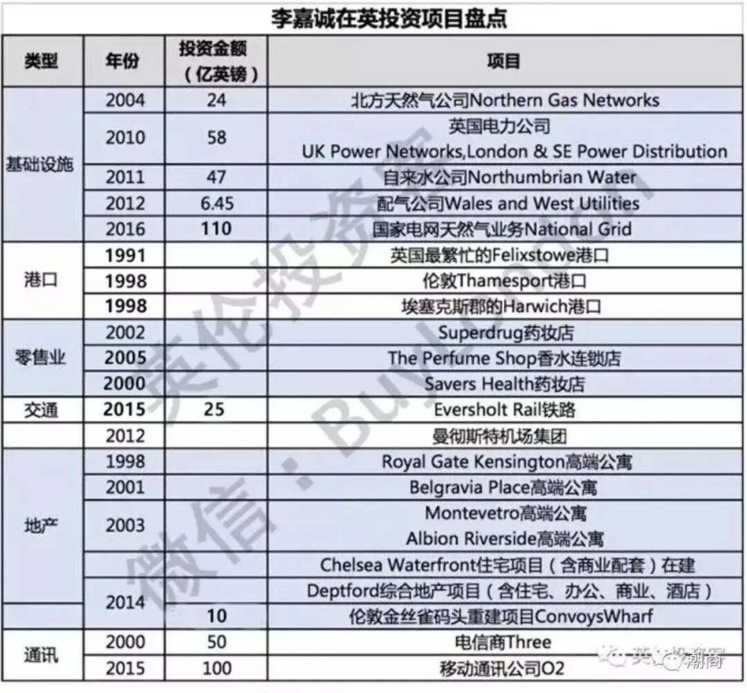 套现之后,李嘉诚重仓英国(英伦投资客制图)