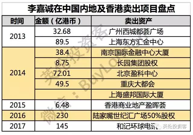 李嘉诚套现大陆香港(英伦投资客制图)