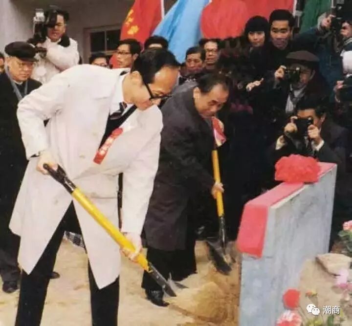 1984年元旦,汕头大学举行奠基典礼,李嘉诚和庄世平为奠基石培土