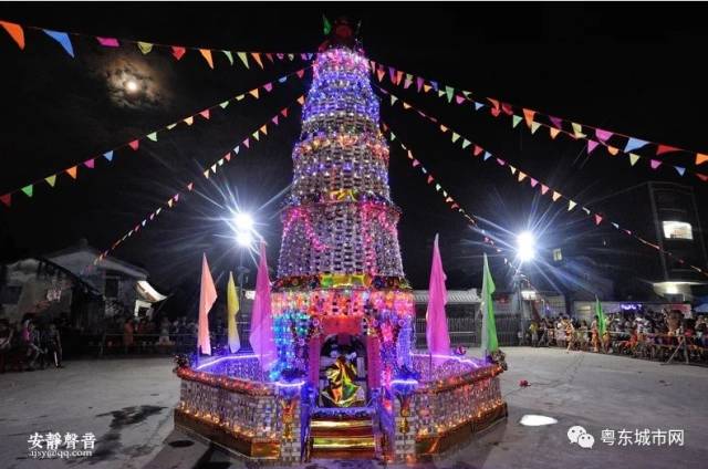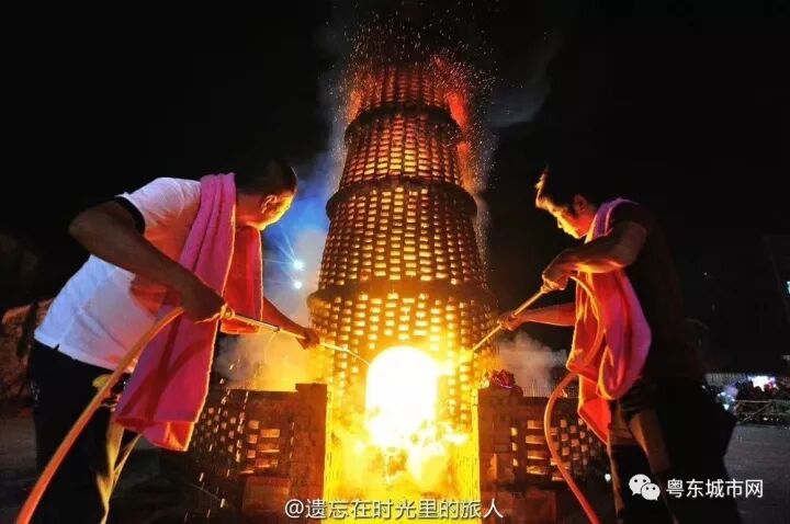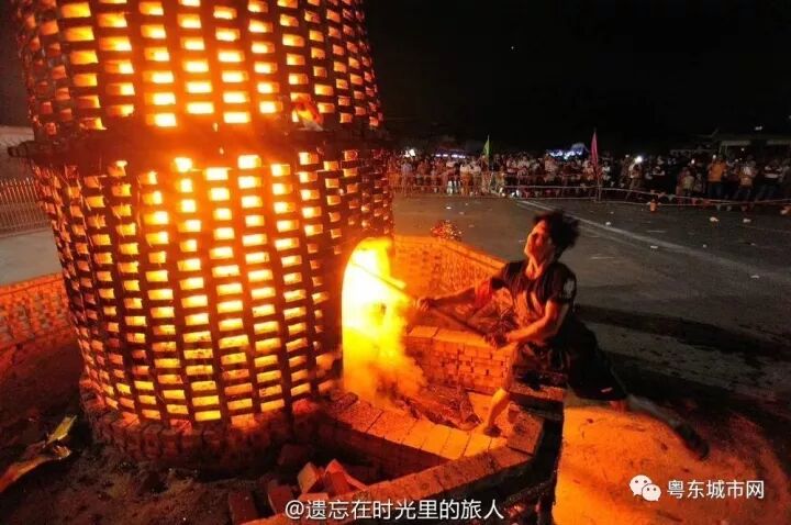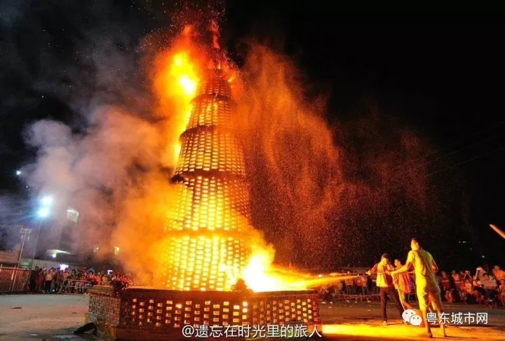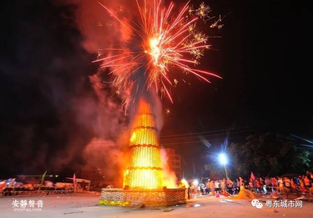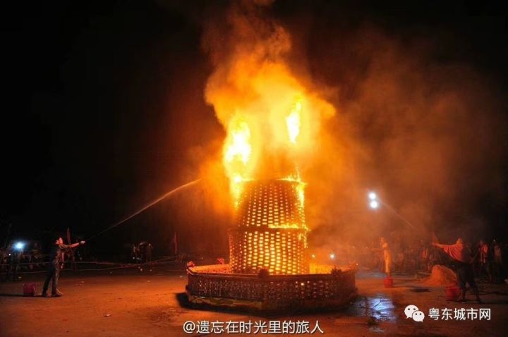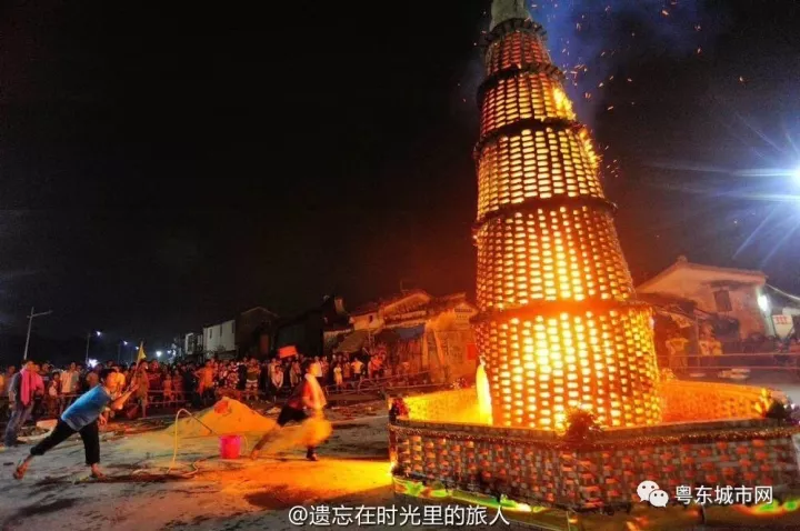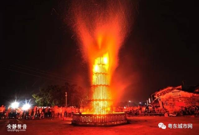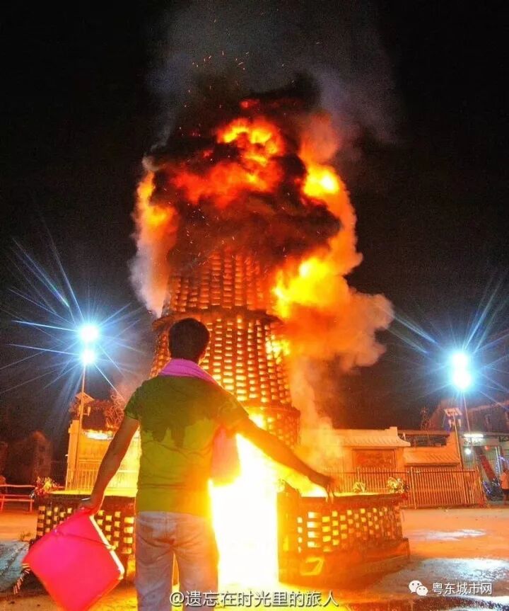 大潮汕中秋之夜烧番塔习俗,场面红红火火