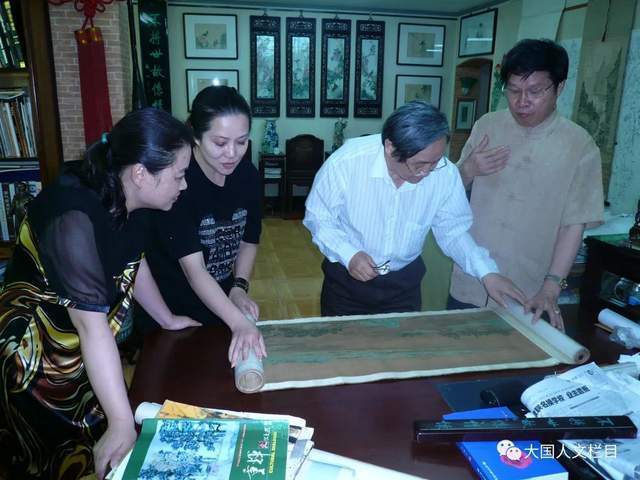 2003年秋天,有一夜九时许我和爱人周雁如登门请沈鹏主席赐墨宝,并打开仇英《春山仙馆》图卷给主席欣赏,他很激动,品味刘墉、翁方纲二跋的笔墨功力,诗文名句,兴奋地说:“吴先生,此卷今晚放我家,我也赋诗跋于后,够不够格?”我忙说:“主席之书法和诗词谁不知晓,当然够格,可是明天上午十时我要乘机回汕头,下次我再带来!”我临走时他还叫我打开全卷,神情激昂,赞不绝口。脸上流露出一种感慨之情!我们回家的第二天他老人家突然来电说:“吴霞先生,你们到家了吗?你们不怕被人抢去,拿一件国宝在京,‘“随便给人看呀”。”我当时很感动,连声谢谢!实际上抢的人不懂货,懂货者不会抢。我暗自感叹他何等珍爱文物也。