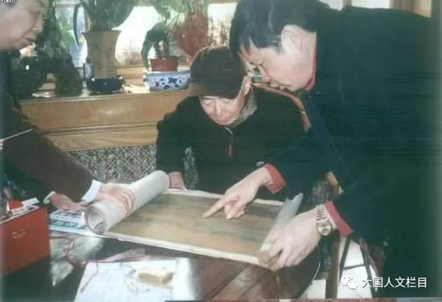2003年秋天,我带明代仇英《春山仙馆》图卷,来到徐邦达先生家中,他看到此卷,激动得很!说“此卷精到,就众多微小之人物,笔笔见笔,设色为矿物质原料,有界画的风味开门会”,他很想在此卷上题跋,但手不听指挥,抖动异常,写不了,在我再三请求和其夫人腾芳女士的帮助下,他振作精神,挥毫书题“收藏天地”四字,真为此卷添光增色。徐老及夫人如此精议地对待文物的那一幕令我感激不已,终生难忘。