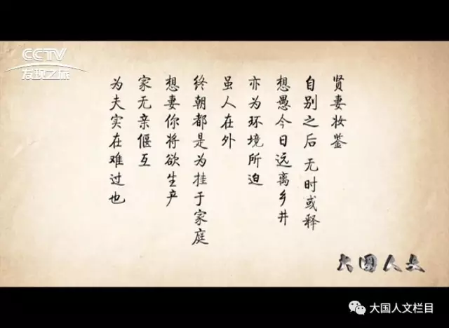 “贤妻妆鉴,自别之后,无时或释。想愚今日远离乡井,亦为环境所迫,虽人在外,终朝都是为挂于家庭。想妻你将欲生产,家无亲偃互,为夫实在难过也。”